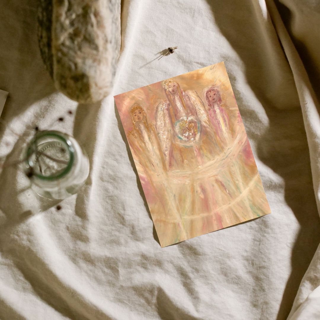 Add this meaningful postcard to your collection or gift it to someone in need of Gabriel’s comforting presence. A gentle reminder of empathy, strength, and love.