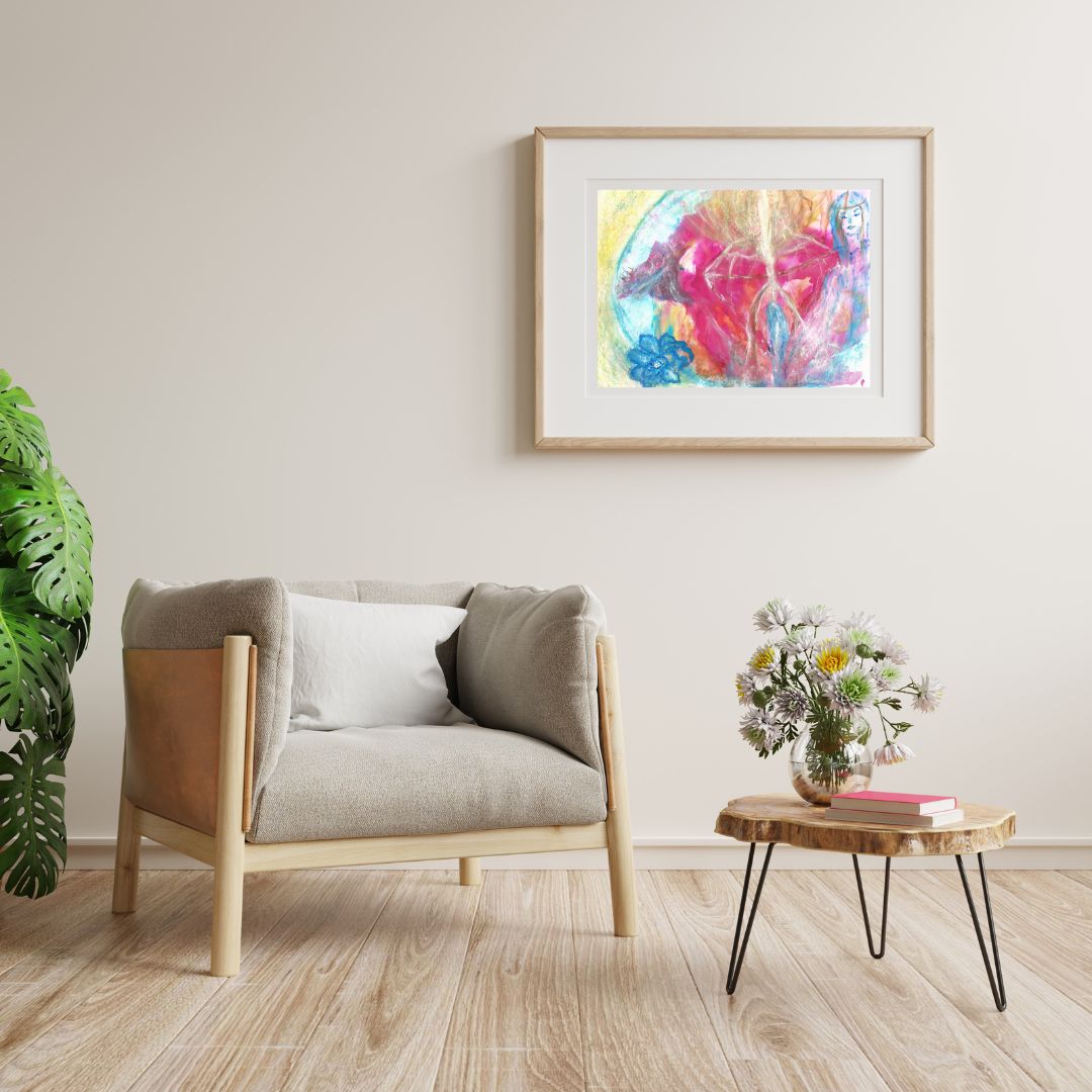This artwork invites you to connect with your own strength, offering a visual reminder of the divine power that resides within. The gentle yet powerful pink tones infuse the space with an aura of confidence, self-worth, and healing, making it an ideal piece for anyone on a journey of personal growth and transformation. It serves as a powerful symbol of protection, empowerment, and the divine feminine force.