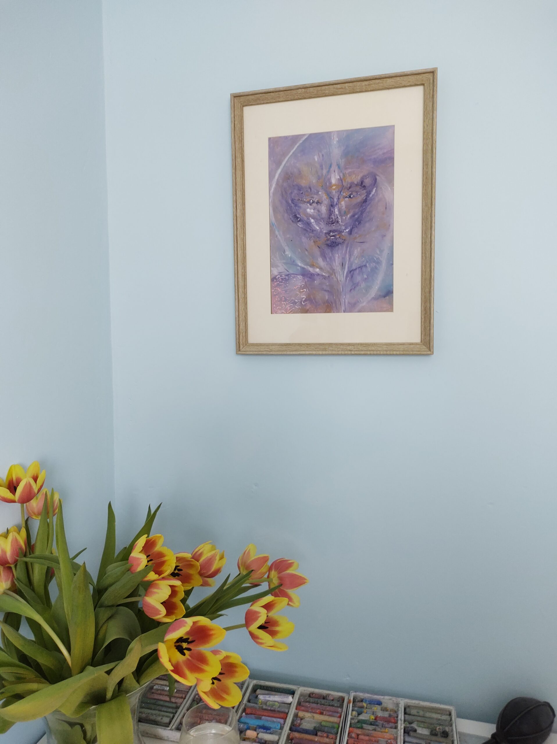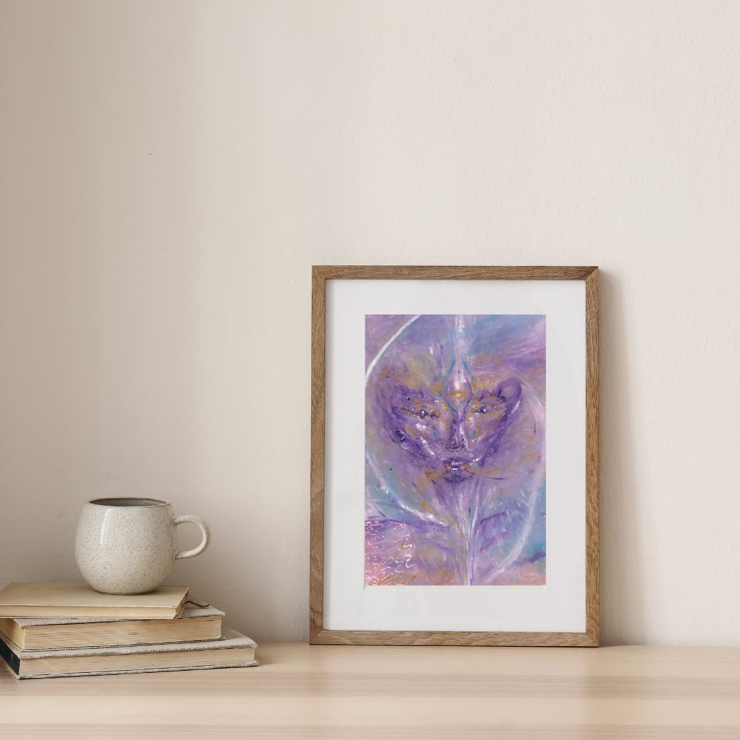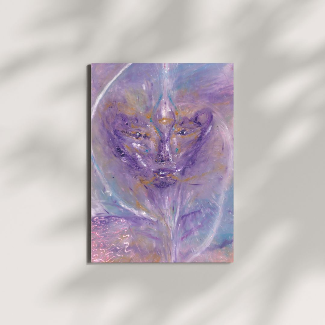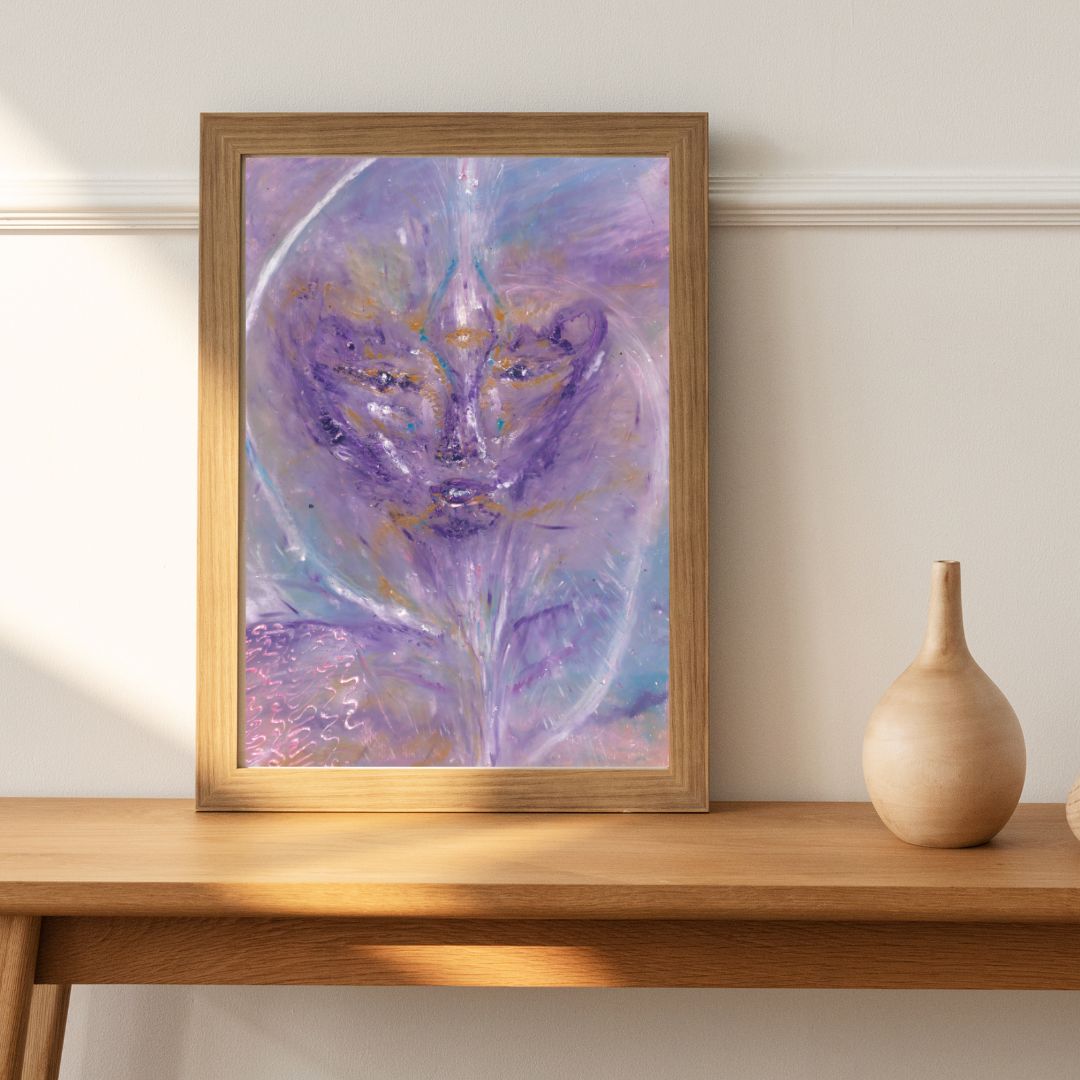 Goddess Sekhmet is a powerful original oil pastel artwork that embodies the fierce energy of transformation, protection, and divine strength. At its core, the lion-headed goddess radiates an intense presence, symbolizing both destruction and healing. The rich purple and golden hues reflect her fiery essence.