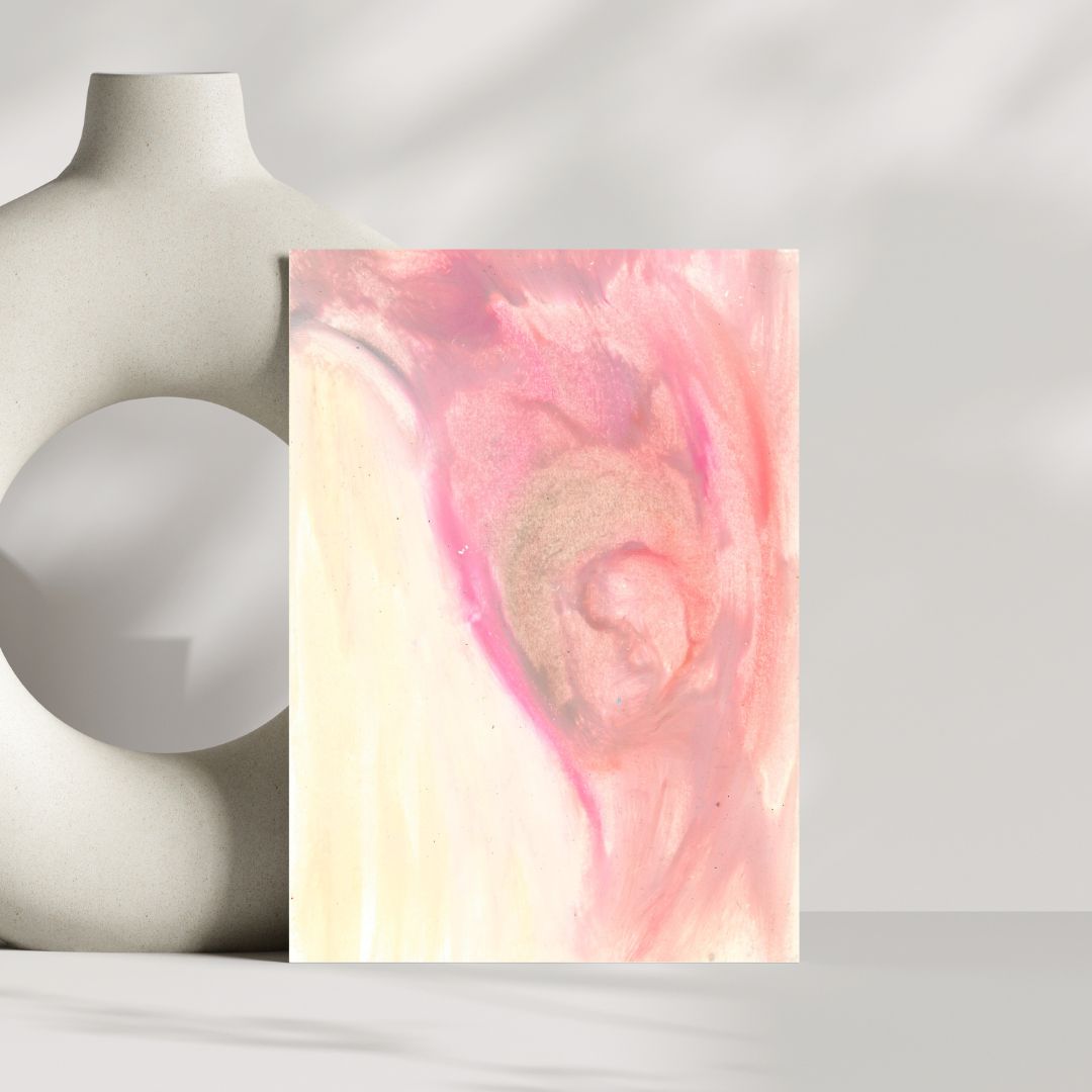 Celebrate the miracle of new life with this tender A6 postcard, featuring a foetus in the womb, surrounded by soft pink tones. “Here I Am” beautifully captures the sacred beginning of motherhood, symbolizing the blossoming of new life and the deep connection between mother and child.