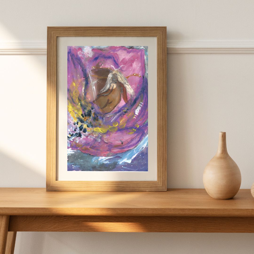 - Medium: Original watercolor and acrylic painting with gold accents on premium paper
